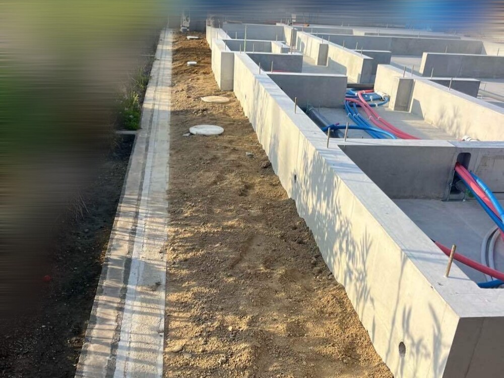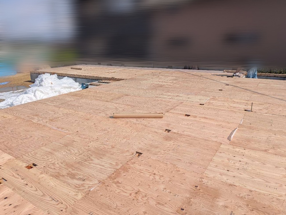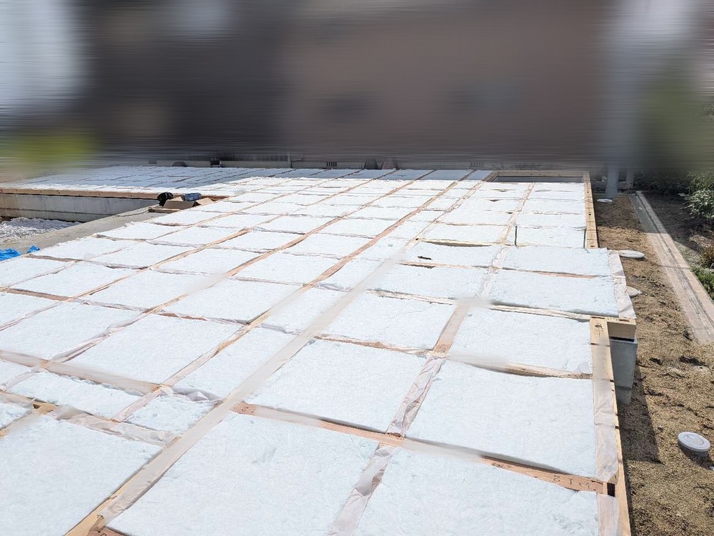 基礎工事が完了し床下や建物周りの外部の給排水工事、大工さんの土台敷き作業まで進みました。