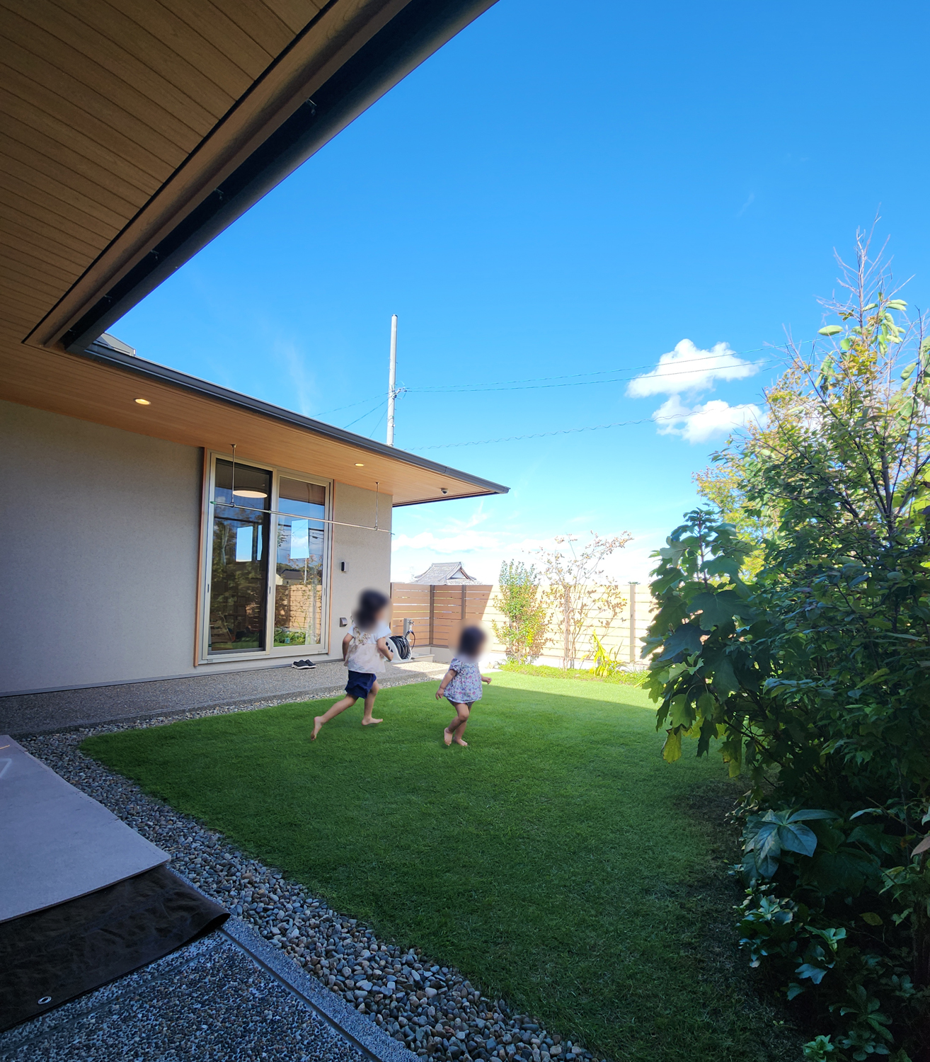 愛情込めて手入れされたお庭を子供たちが裸足で走りまわる素敵な光景。