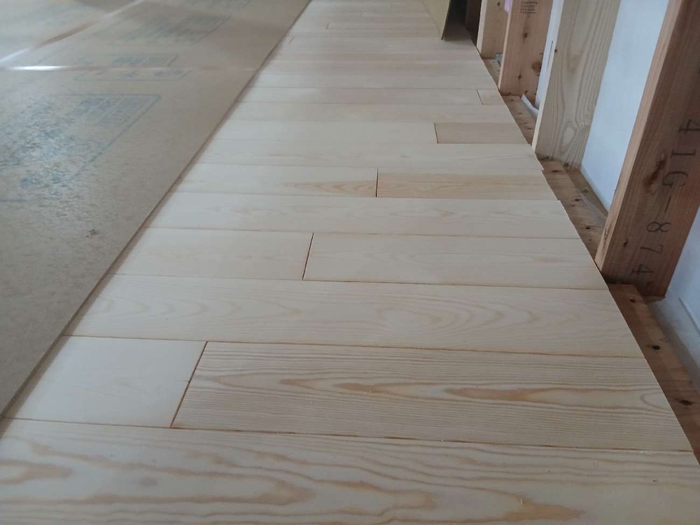 前回のご紹介から約1カ月が経過し外壁の下地や断熱前の電気配線、床張りまで進みました。