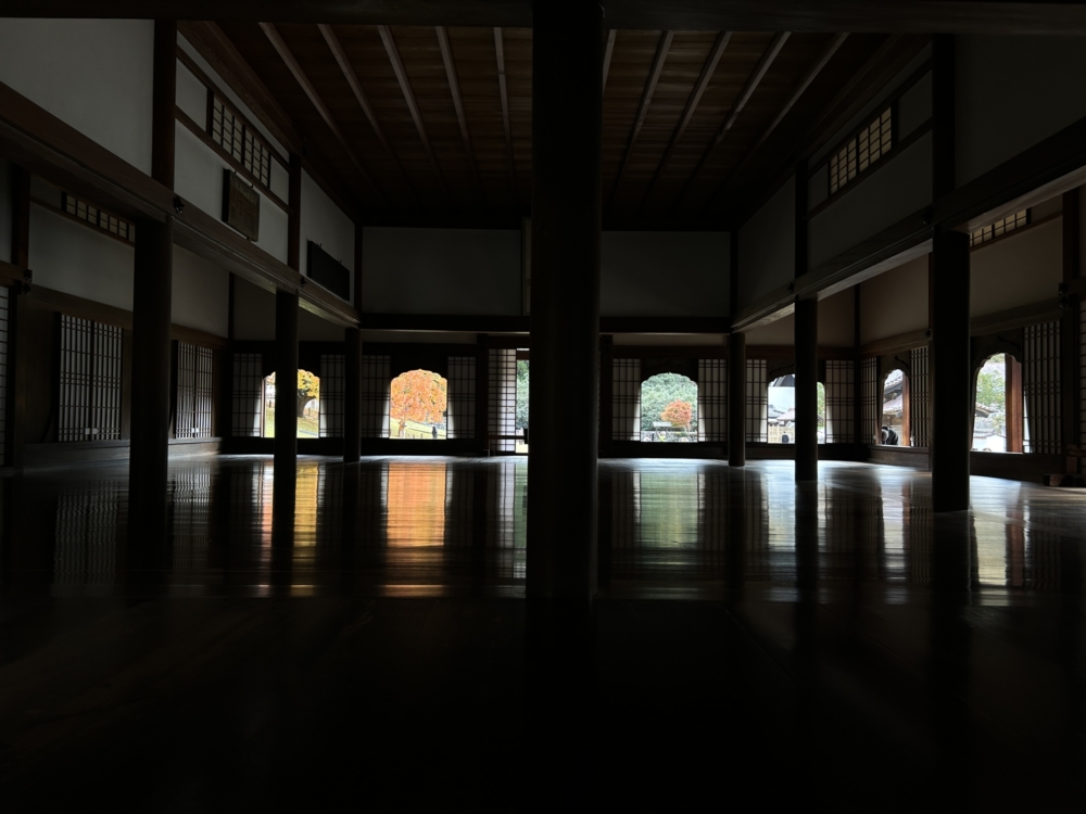 建物の中からちらりと見える紅葉が綺麗でした。
