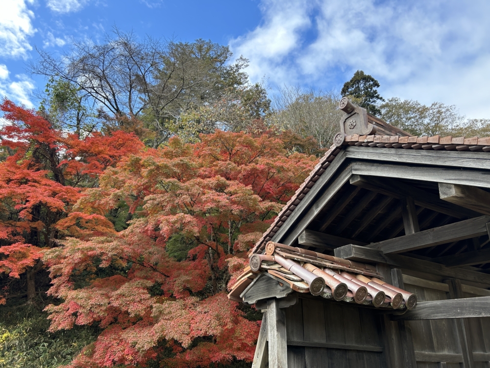 建物の中からちらりと見える紅葉が綺麗でした。