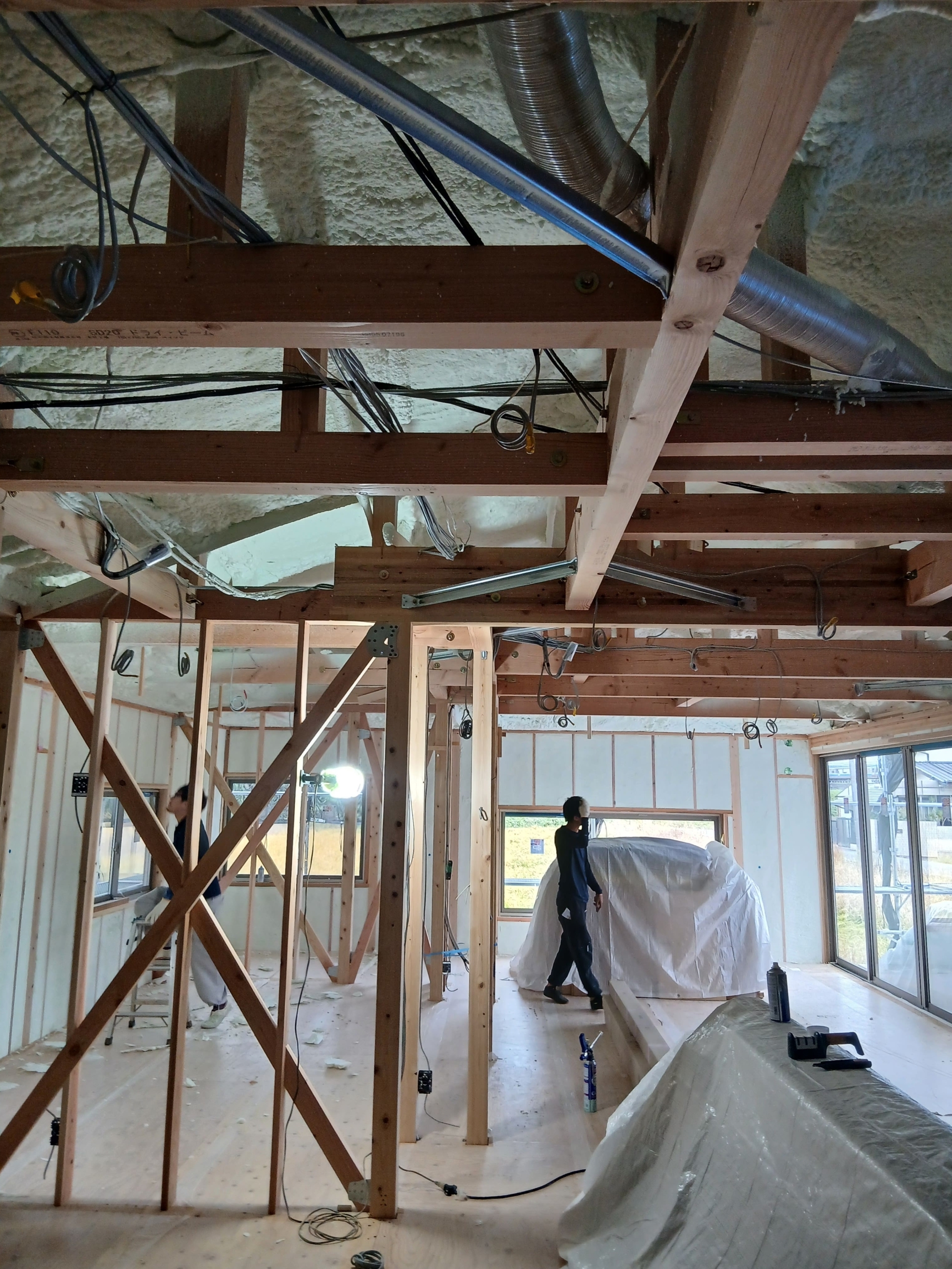 岡山市にて進行中の平屋物件ですが、電気配線工事と断熱工事が完了しました。