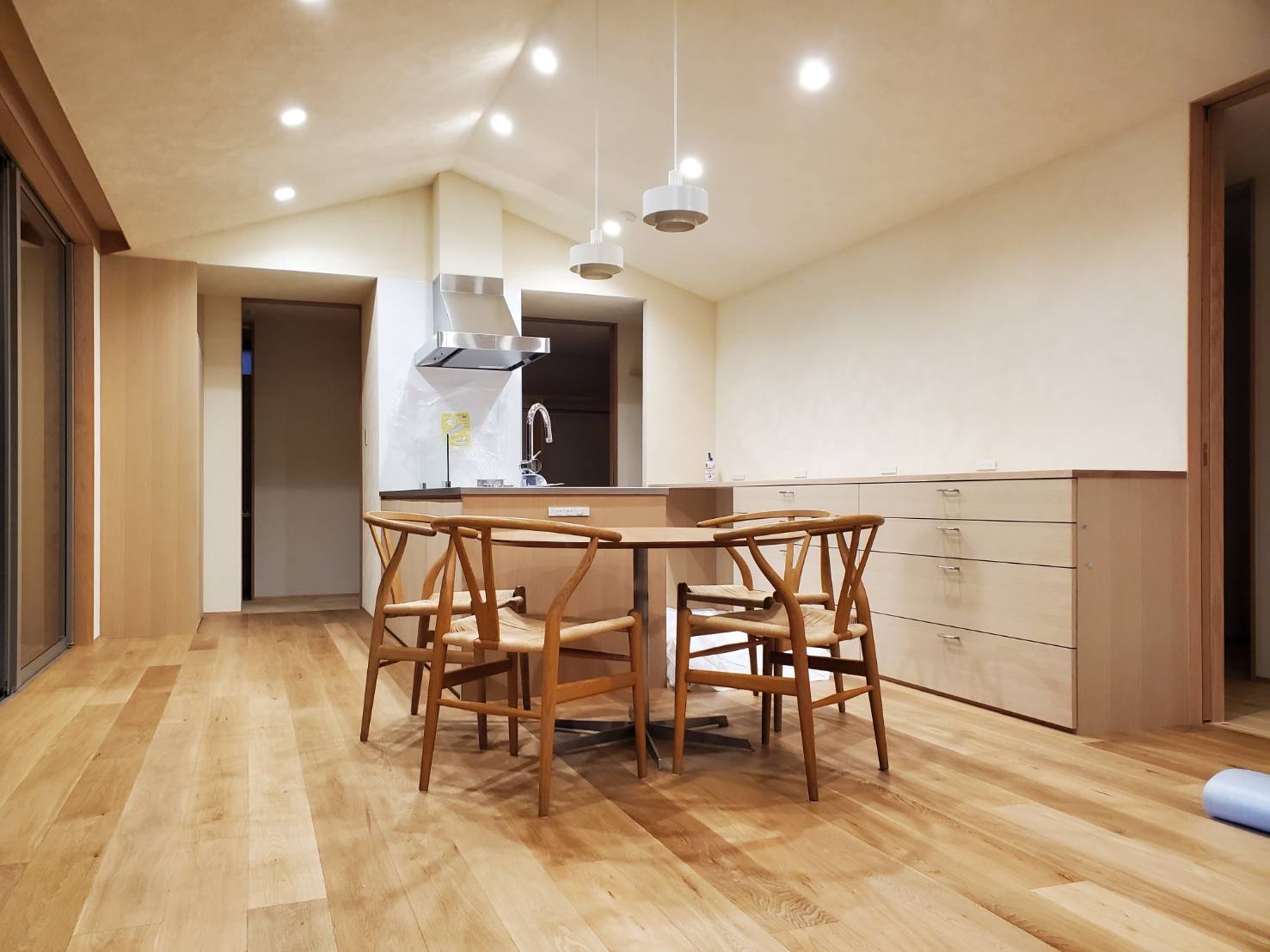 こちらのお家は、造作キッチンに広々とした船底天井のLDK、暮らしやすい家事動線など見どころ満載のお家となっております。