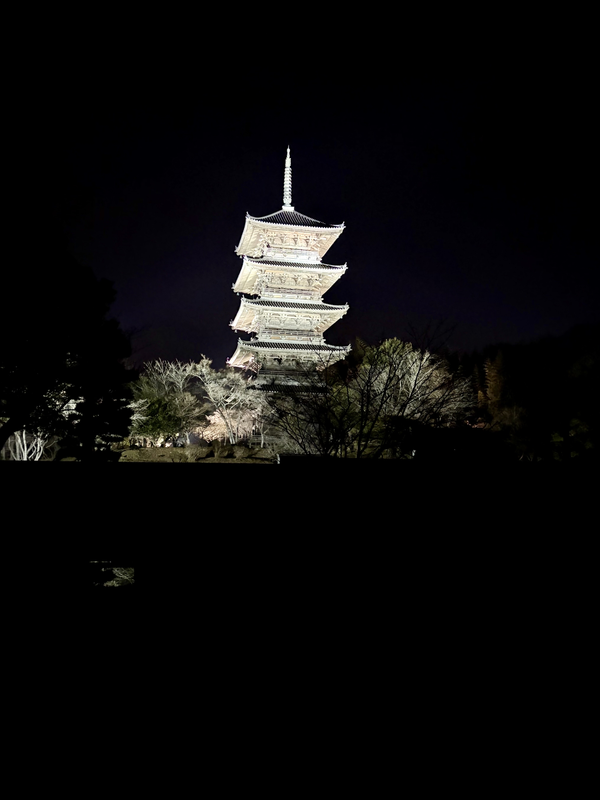 最近、夜になると備中国分寺がライトアップされているのをご存知でしょうか?