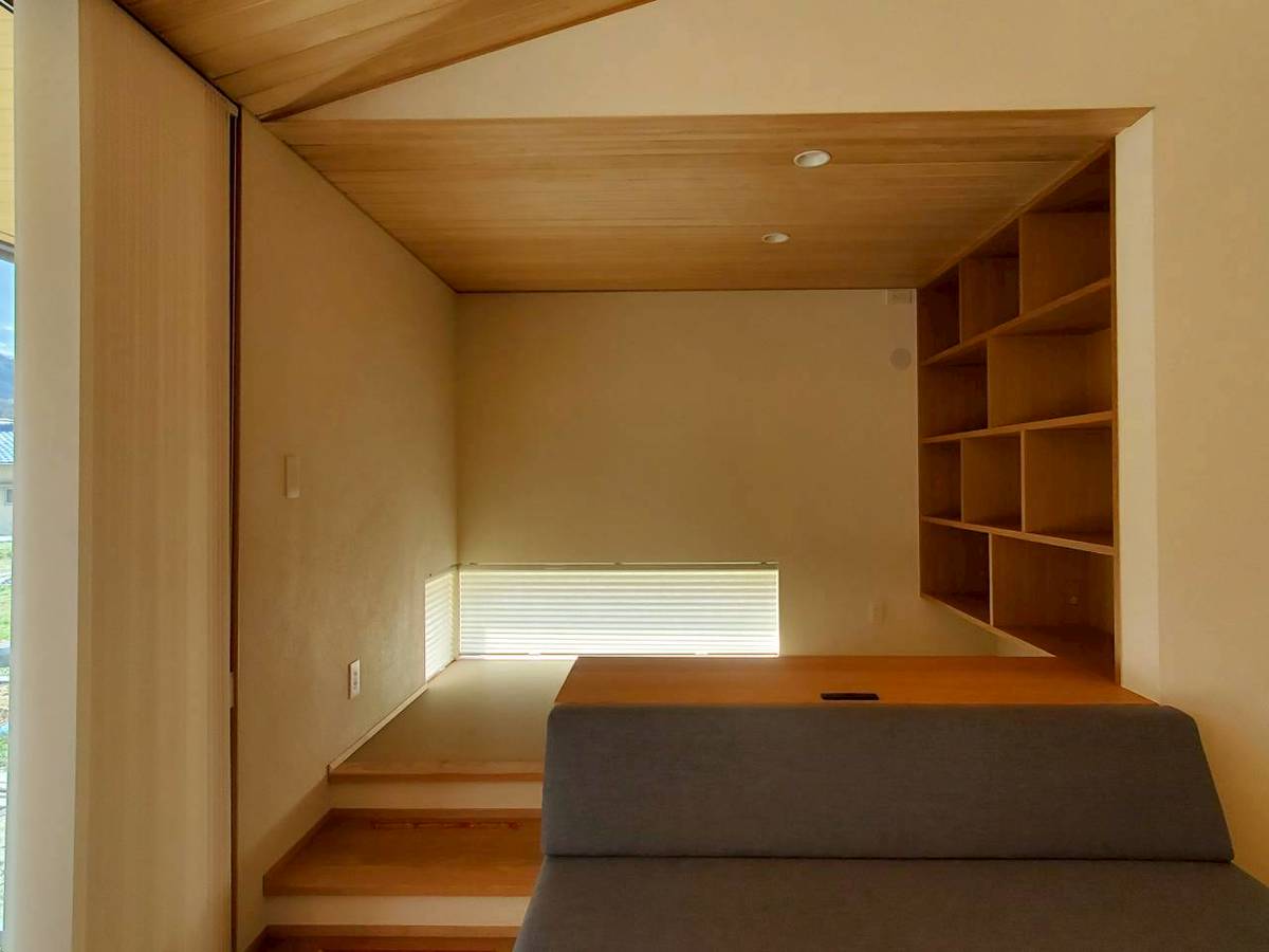 【キャンバスのいえ】をヒントにした一段上がった畳コーナーと造作ソファ、